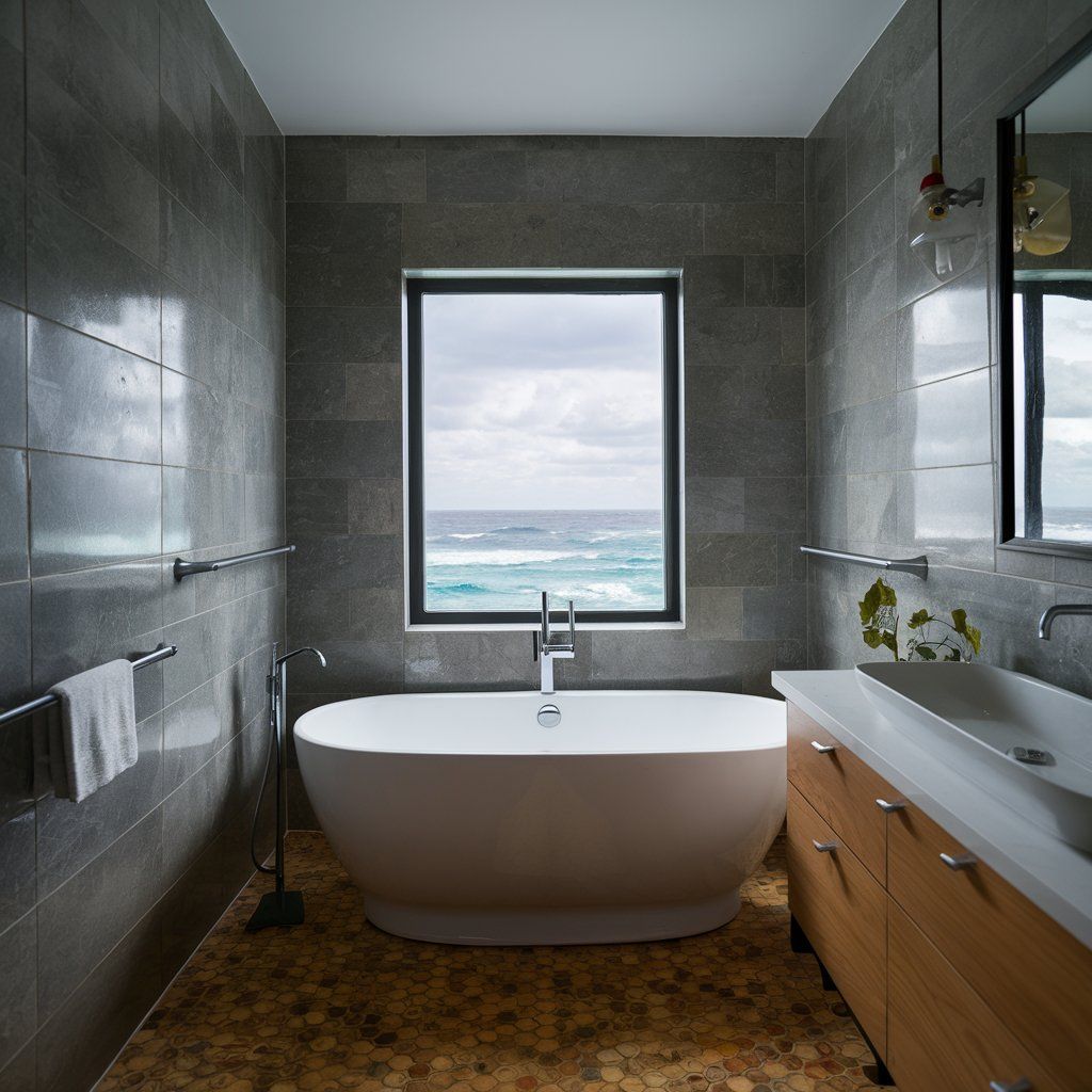 • Nautical accents and soothing color palette (blues, whites, sandy beiges)